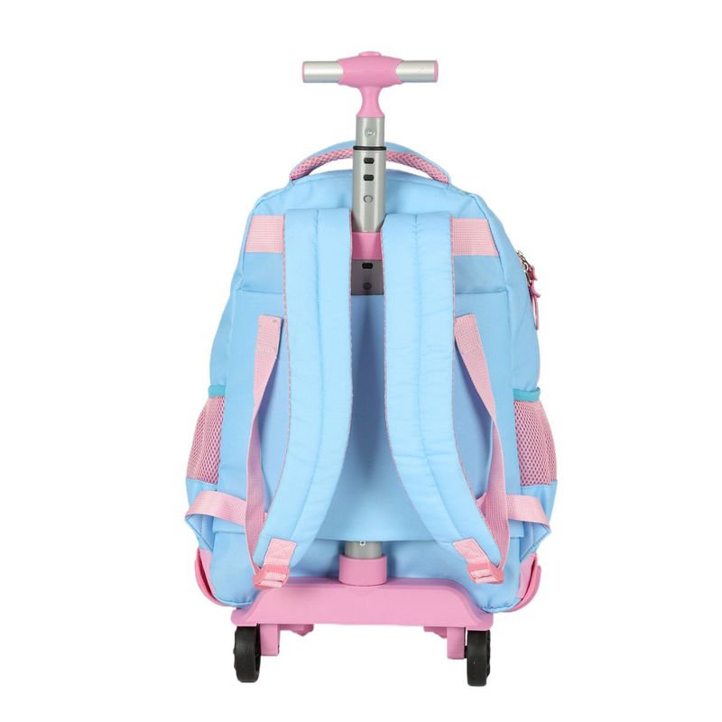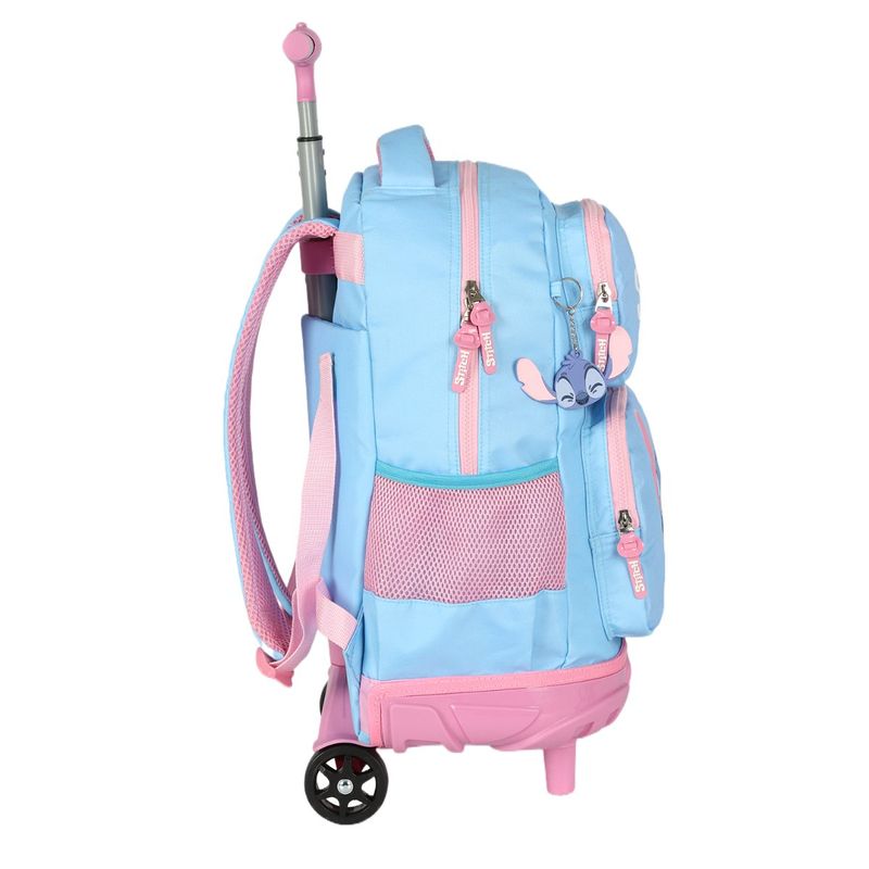 Mochila Escolar com Rodinhas Disney Stitch - Azul e Rosa Leve, prática e superfuncional, esta mochila escolar com rodinhas é perfeita para o dia a dia das crianças. Confeccionada em nylon resistente, garante maior durabilidade e suporte para transportar materiais escolares com conforto e segurança. Com dimensões aproximadas de 48 x 34 x 22 cm (AxLxP) e pesando aproximadamente 680g, é uma opção leve e fácil de carregar, seja nas costas com suas alças acolchoadas ajustáveis, ou puxando com o carrinho de duas rodas reforçadas e haste retrátil anatômica. O design encantador traz a estampa oficial da Disney Stitch, com cores vibrantes em azul e rosa, além de puxadores de zíper personalizados que deixam o produto ainda mais divertido. Possui amplo compartimento principal para cadernos e livros, bolsos frontais com zíper para objetos menores e bolsos laterais em tela ideais para garrafinhas. Características principais: Material: Nylon resistente e durável Dimensões: 48 x 34 x 22 cm (AxLxP) Peso: 680g (leve e prática) Modelo: mochila com rodinhas Estampa oficial Disney Stitch Alças acolchoadas e ajustáveis para uso nas costas Haste retrátil com pegador anatômico Duas rodas reforçadas para fácil transporte Compartimento principal espaçoso Bolsos frontais com zíper e laterais em tela Benefícios: Leve e resistente, ideal para uso diário na escola Pode ser usada como mochila ou puxada pelas rodinhas Estilo divertido com estampa exclusiva Stitch Seja para a escola, passeios ou viagens curtas, a Mochila com Rodinhas Stitch Disney vai encantar as crianças e facilitar a rotina dos pais!
