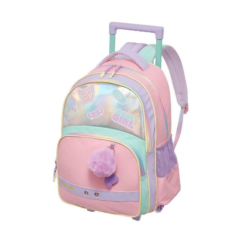 MOCHILA DE RODINHAS PACIFIC Mochila de rodinhas Pacific com alças de costas, que conta com estampa frontal, bolso frontal, telinha lateral, compartimento grande com fechamento em zíper e etiquetas personalizadas. Características Principais: Dimensões: Aproximadamente 42 x 32 x 21cm (LxPxA). Garantia contra defeitos de fabricação.