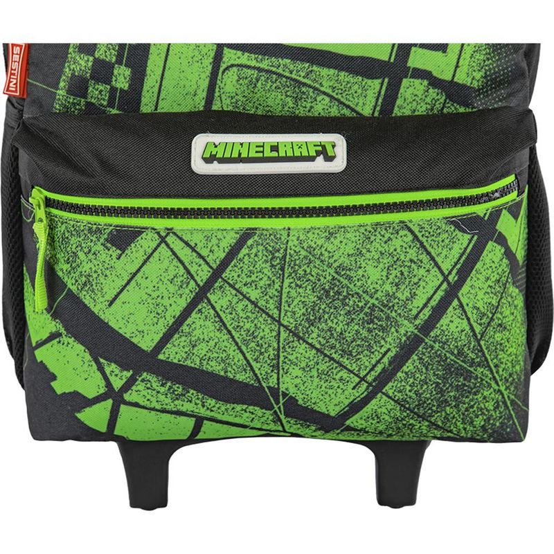MOCHILA DE RODINHAS SESTINI G MINECRAFT M PLUS ACID Mochila de rodinhas com bolsos laterias em tela com elástico, alças de costas reguláveis, estampa frontal, bolso frontal com zíper, alça de mão e etiquetas personalizadas. Características Principais: Dimensões: 32 x 49 x 19cm (LxAxP). Volume: 19 Litros Peso: 1kg. Garantia contra defeito de fabricação.