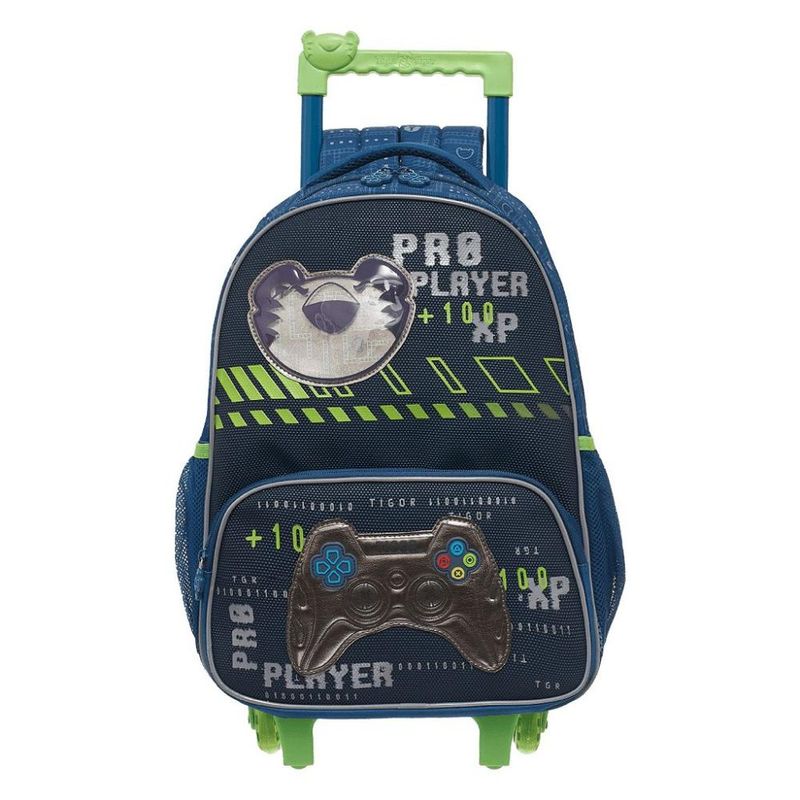 MOCHILA DE RODINHAS TIGOR T TIGRE Mochila de rodinhas Tigor T Tigre com alças de costas, que conta com estampa frontal, bolso frontal, telinha lateral, compartimento grande com fechamento em zíper e etiquetas personalizadas. Características Principais: Dimensões: Aproximadamente 43 x 31 x 13cm (LxPxA). Volume: 19 litros. Garantia contra defeitos de fabricação.