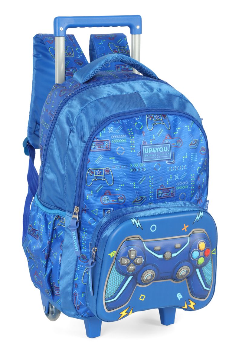 Mochila com Rodinha Game Up4You da Luxcel é ideal para escola, com compartimentos bem distribuídos, possui bolsos frontal grande e lateral, com espaço suficiente para itens de uso diário. Com a Mochila da Game Up4You às idas para a escola serão mais divertidas e organizadas!!