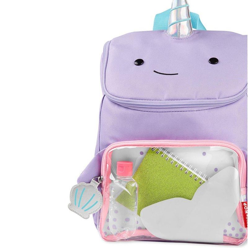 Você pediu uma mochila maior e nós entregamos! Com o tamanho certo para pastas escolares, suprimentos, uma lancheira (e muito mais!), Nossa linda Mochila Escolar Zoo Baleia Narval da Skip Hop tem espaço para todos os itens essenciais que seu filho precisa e além. Com abertura ampla e de fácil acesso, além de um bolso frontal transparente que facilitam o armazenamento, enquanto o bolso de malha para garrafas mantém as bebidas sempre à mão. ESPECIFICAÇÕES: