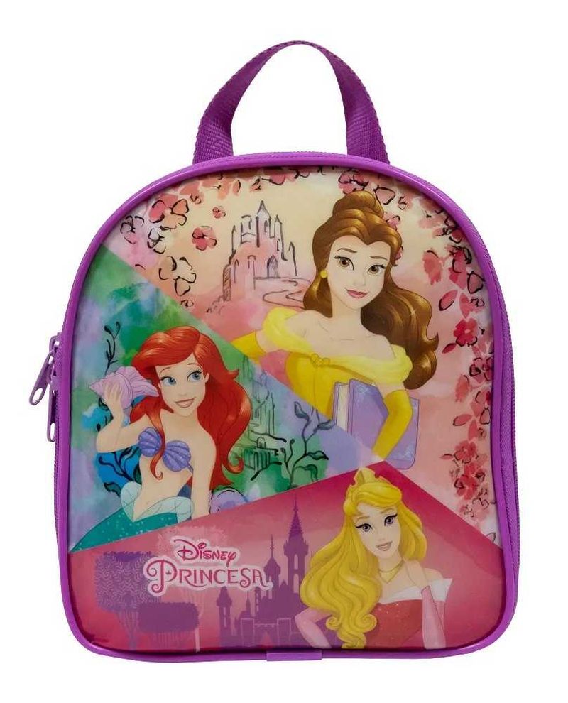 Mochila 16 Princesas X2 - 11072 - Em tamanho 16", é produzida em poliéster resistente e estampado. Painel frontal PVC Cristal - Compartimento principal amplo, zíper com puxadores simples . Alças acolchoadas com regulagem de tamanho para maior conforto.