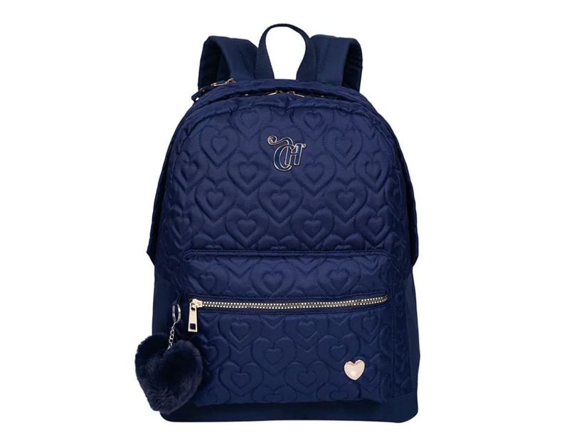 E que tal viver um belo romance junto da Mochila Grande 2 Compartimentos Capricho Crush Azul Marinho? Produzido em Nailon, material bem resistente. Possui alças anatômicas para maior conforto dos ombros. Tem bolso frontal com fechamento por zíper, bolsos laterais com elástico para pequenos objetos ou garrafinha e, além disso, tem alça de mão e puxadores em tiras de cadarço. Este modelo acompanha um lindo acessório.