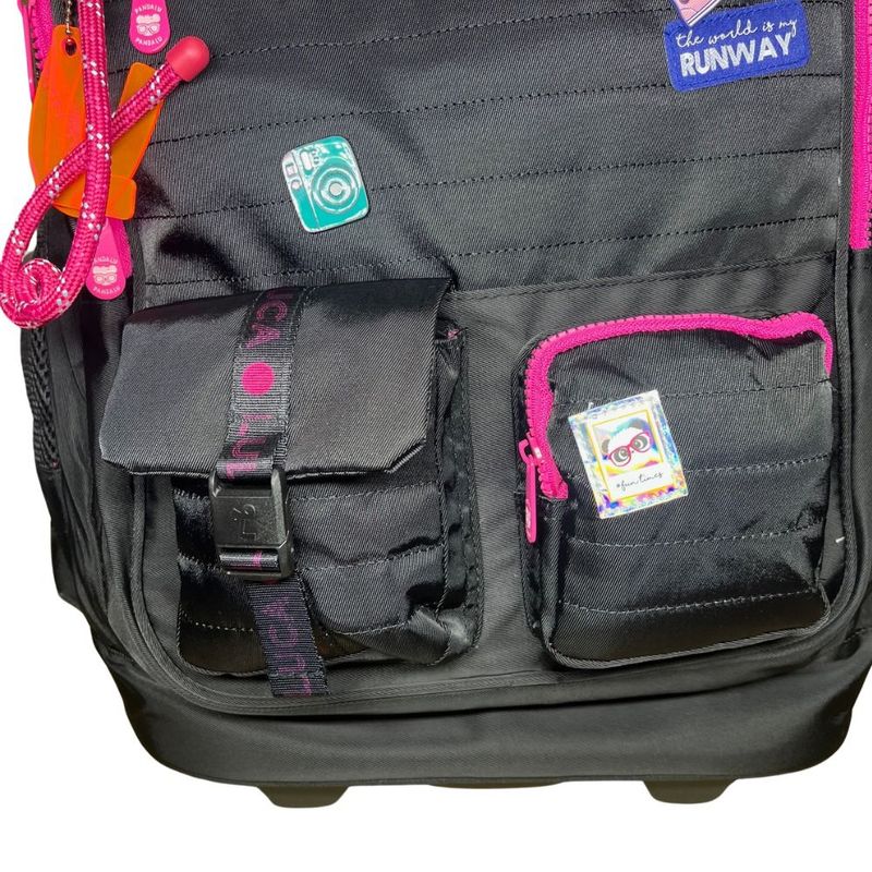 Além disso, a mochila conta com rodinhas macias, facilitando o transporte, e detalhes exclusivos como chaveiro de corda e acrílico, zíper bicolor e cadarços logados acetinados que completam o visual moderno. É muito mais que uma Mochila Escolar Luluca – é uma aliada para quem busca estilo e organização.