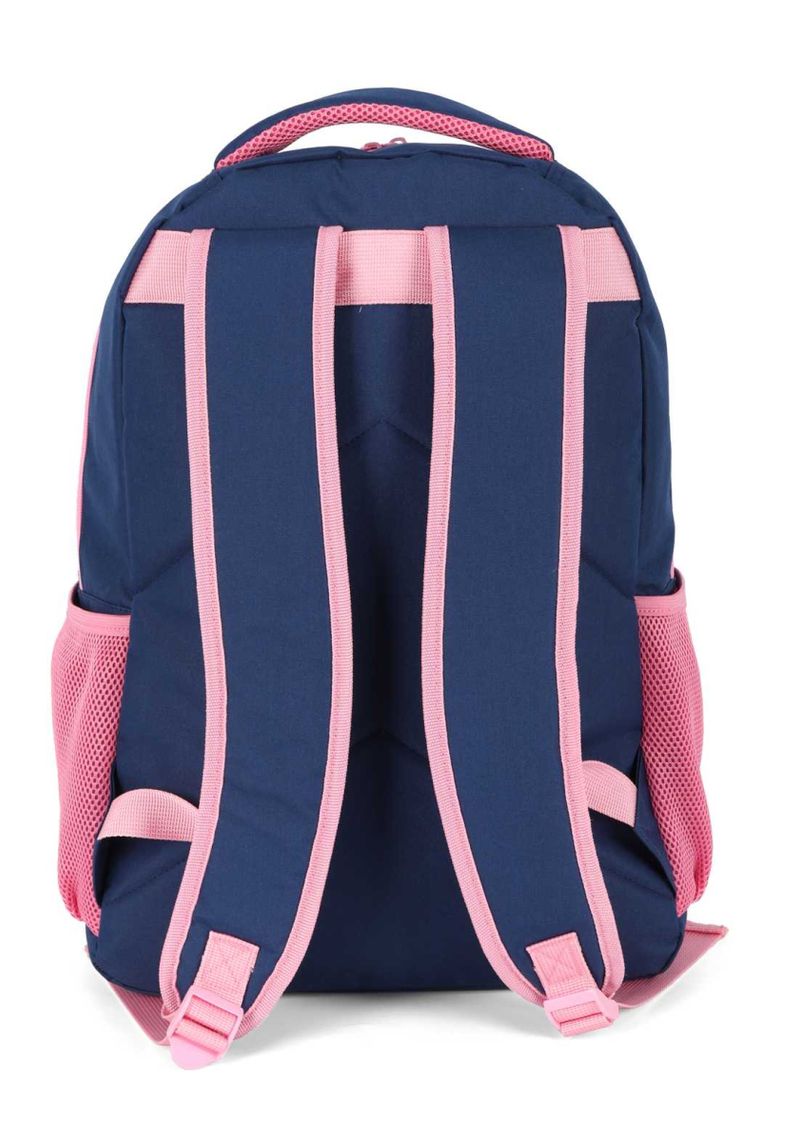 Em tamanho 16" ela é produzida em poliéster e seu painel frontal é em PVC cristal com personagens em relevo. Possui 2 bolsos laterais, compartimento amplo para armazenagem dos materiais e zíper com puxador personalizado. Alças acolchoadas e com ajuste para maior conforto.