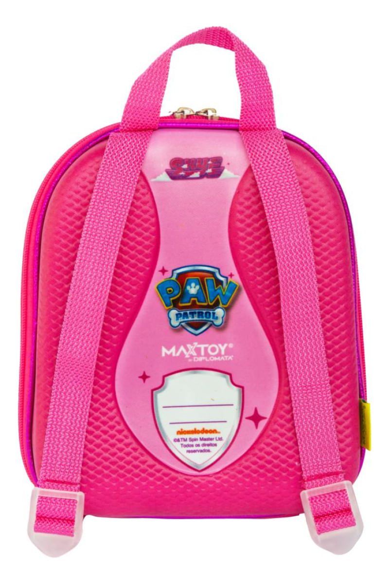 Confeccionada em EVA de alta qualidade e resistência, proporcionando um corpo rígido mas bastante flexível, forma 3D Termomoldada, processo patenteado e exclusivo. Não tem nada igual no mundo. Sistema de fechamento com zíper de qualidade em abrtura 360. Seu interior possui um compartimento com uma malha elástica. Possui 2 alças de costas em nylon, com fivelas de ajuste em plástico, alça de mão em nylon na parte superior, superfície interna e externa impermeáveis, o que protege contra sujeiras e facilita a impleza. Basta um pano úmido. Área de identificação onde pode ser colocado o nome da criança, o nome dos pais e telefones de contato.