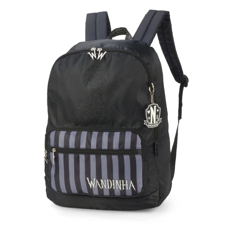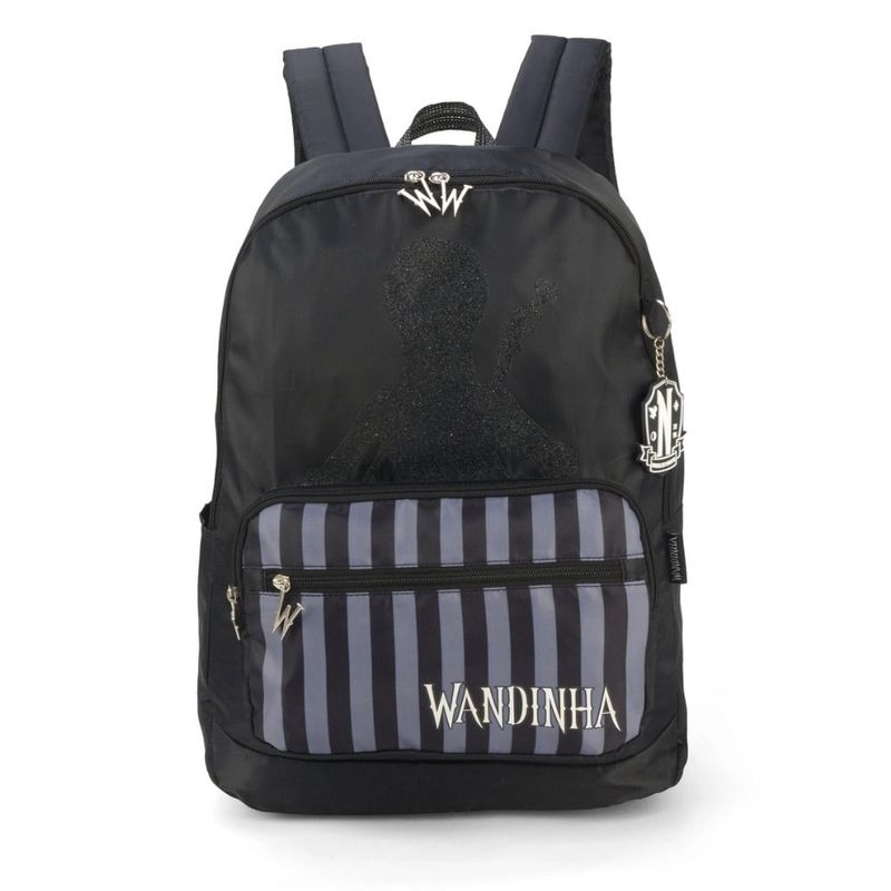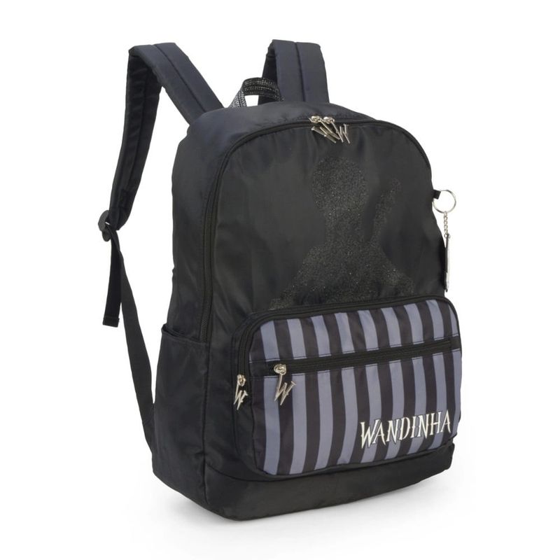 Descubra a magia sombria da Mochila Wandinha da Luxcel, uma peça que combina estilo e funcionalidade. Acompanhada por um chaveiro emborrachado exclusivo, esta mochila é uma verdadeira jóia. Com um compartimento amplo e um bolso frontal com fechamento em zíper, ela oferece praticidade e organização. Os puxadores personalizados dos zíperes acrescentam um toque único, enquanto o poliéster de alta qualidade assegura durabilidade. Equipada com um compartimento especial para laptop e bolsos laterais perfeitos para garrafinhas, a Wandinha destaca-se também pela sua estampa exclusiva e pela silhueta brilhante da Wandinha em glitter na parte da frente. A alça de mão reforçada e as alças de costas acolchoadas e reguláveis garantem conforto em cada jornada.