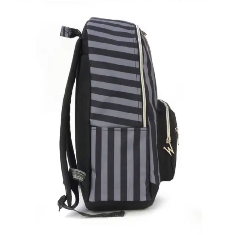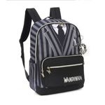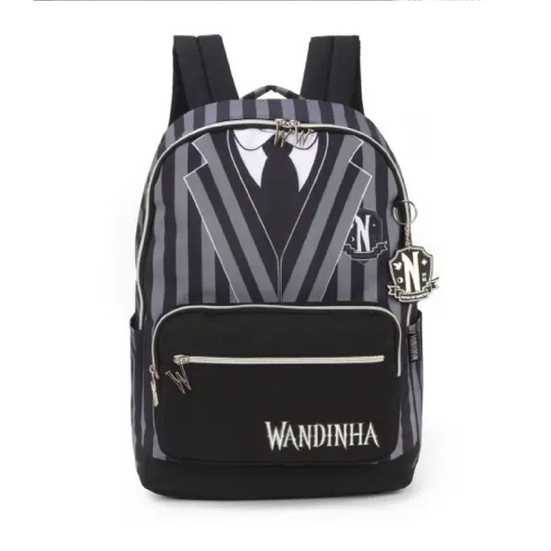 Estilo Distinto Wandinha Costume: Com um design inspirado no traje de Wandinha Addams, esta mochila se destaca por seu estilo único e distinto. Perfeita para aqueles que buscam expressar sua individualidade, amor pela cultura pop e atualidade. Com bolsos frontais e em material reforçado, a mochila da Wandinha vem trazendo segurança e originalidade.