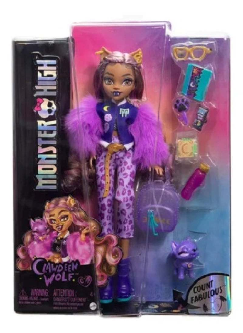 Esta boneca Monster High é um lobisomem icônico! Clawdeen Wolf mostra seu senso de moda furtivo em um look roxo da cabeça aos pés. Seu cachorro arrepiante Crescent também está pronto para participar da diversão! Com seu corpo flexível e acessórios assustadores para contar histórias, a boneca Clawdeen Wolf é um presente perfeito para crianças a partir de 4 anos de idade. Totalmente articulada. A boneca não pode ficar em pé sozinha. As cores e as decorações podem variar.
