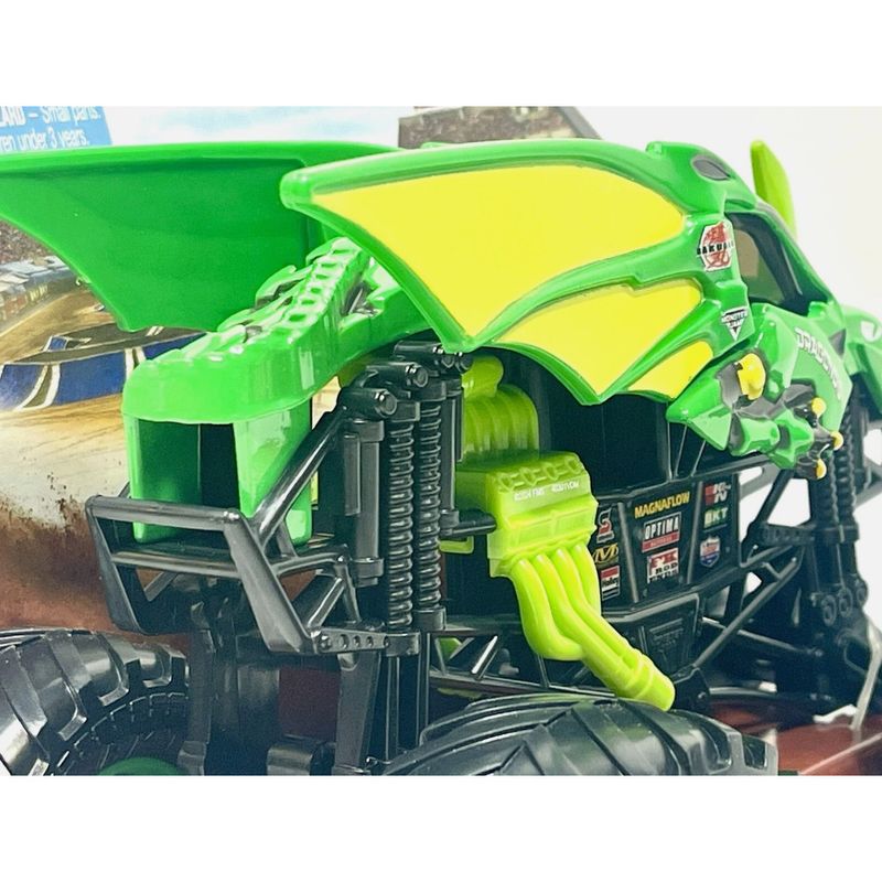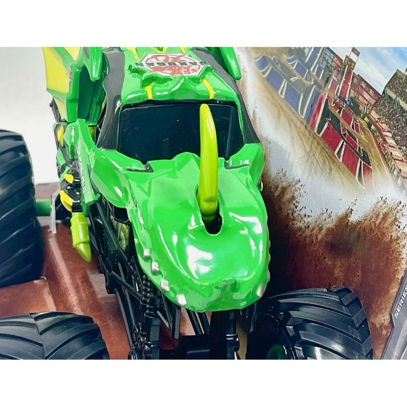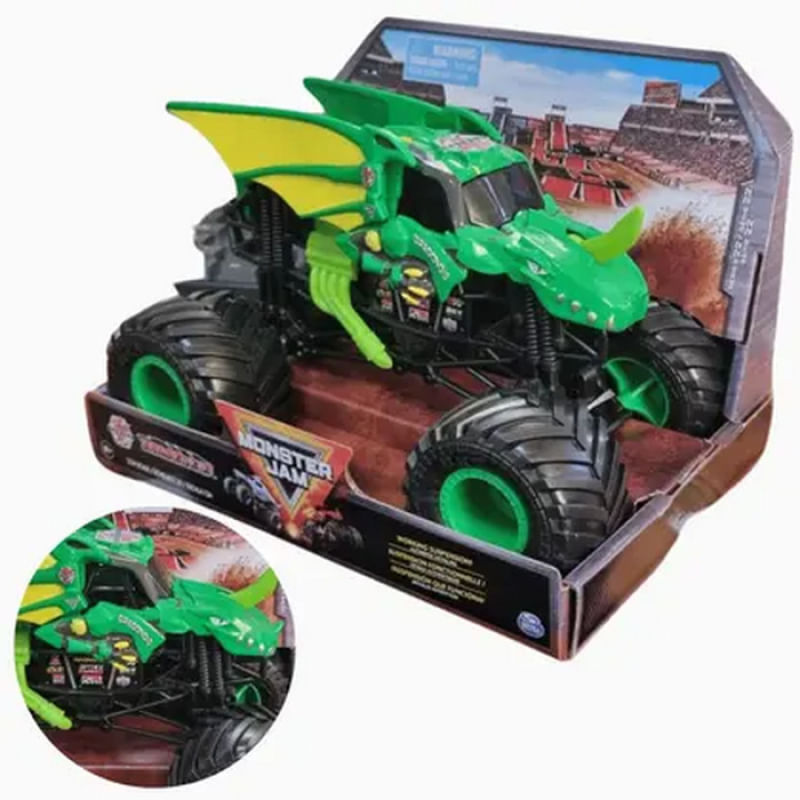 Melhore o seu jogo com o novo caminhão monstro Monster Jam escala 1:24! Com detalhes e gráficos incríveis, esta réplica autêntica tem o estilo e a arrogância da coisa real. Suspensão funcional permite que seu caminhão absorva mais impacto, então a ação épica Monster Jam nunca para! Além disso, os pneus BKT de borracha oferecem maior tração para levar seu caminhão a novos patamares!