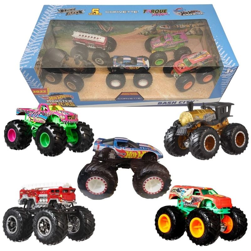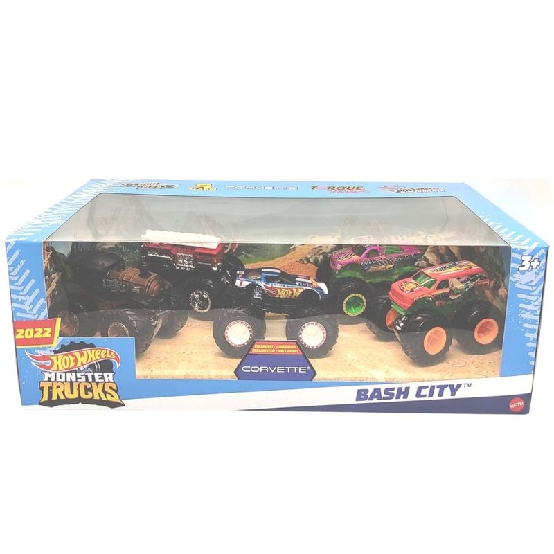 --- Monster Jam Trucks Pack 5 Carros - Bash City Corvette Exclusivo - Hot Wheels - Mattel ---