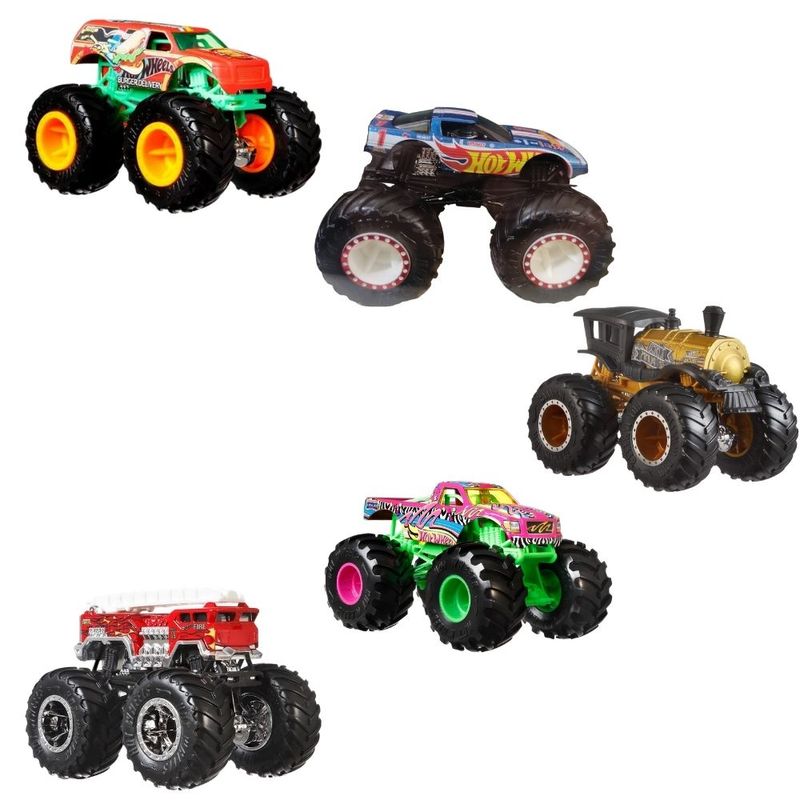 - Hot Wheels e Monster Jam celebram cinco caminhões os mais favoritos de todos os tempos em uma coleção feroz (os estilos reais de veículos podem variar). Use-os para competir como eles fazem no circuito para um bom tempo de colisão, atrofia e esmagamento. O pacote de 5 de 1:64 de escala Monster Jam World inclui embalagem de diorama para a melhor vitrine!