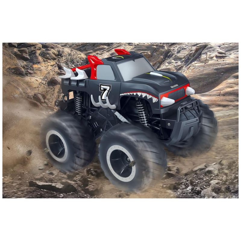 O Monster Truck Threeking 116 é um brinquedo emocionante e versátil, ideal para crianças de 6 a 12 anos. Projetado para ser à prova d'água, esse caminhão pode conquistar diversos terrenos, desde praias e piscinas até estradas de pedra e gramados, podendo até mesmo ser usado na água. Equipado com motores elétricos potentes, tração forte e amortecedores de alta qualidade, o caminhão proporciona poder, emoção e ação para levar a brincadeira a qualquer lugar. Resistente a impactos, possui barras anti-colisão na frente e atrás para maior durabilidade. Com capacidade para até 6 caminhões competirem simultaneamente utilizando o controle remoto com frequência de 2.4 GHz . Garanta diversão ininterrupta.