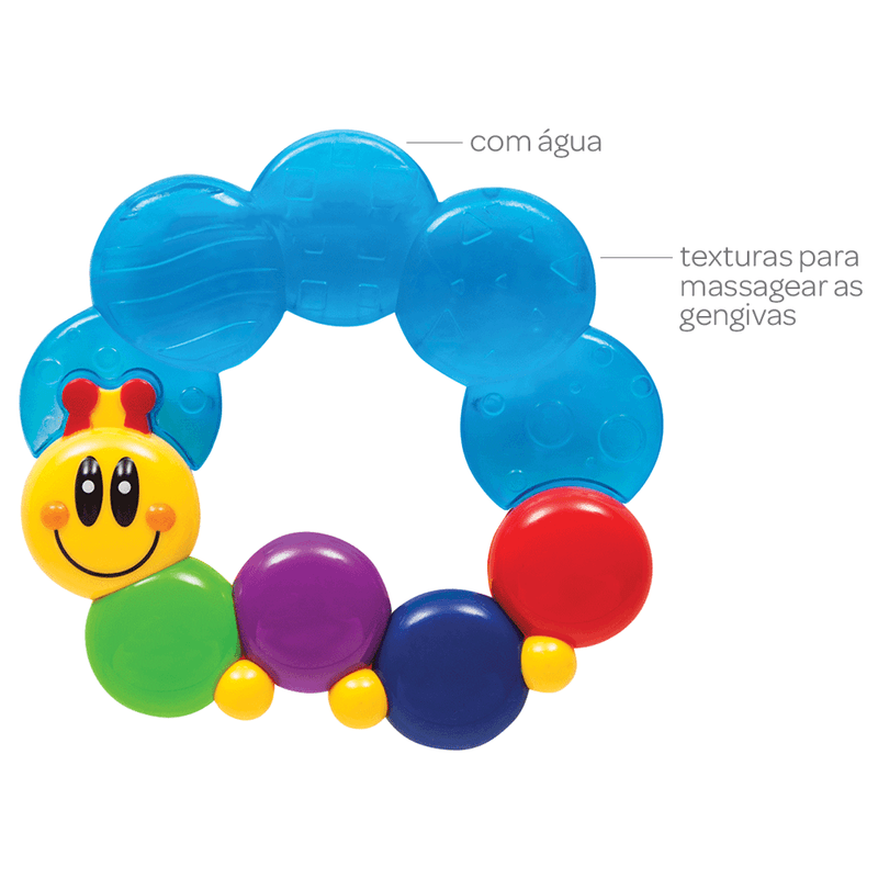 Mordedor com água, com formato lúdico e super divertido de centopéia
