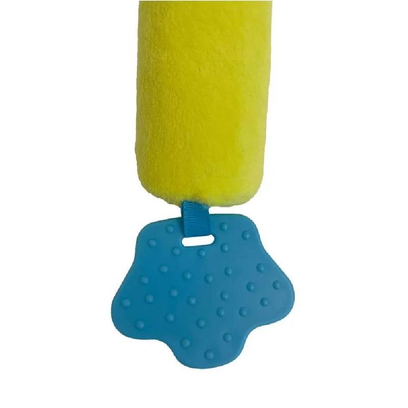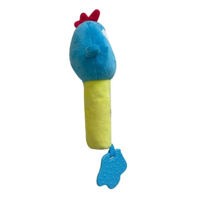 A Buzininha com mordedor da Galinha Pintadinha Mini possui uma textura macia com tecido hipoalérgico; vem com a cabeça da Galinha Pintadinha na versão mini, com toque macio e detalhes bordados; acompanha um mordedor em plástico macio. Ao apertar emite um som de buzina. Bastão e mordedor pode vir em cores sortidas. Imagem ilustrativa.