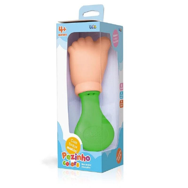 Mordedor Pezinhos Coloridos Verde - Toyster O pezinho é macio e tem dedinhos gostosos de morder! Além disso, possui formato ideal para o bebê segurar! Selo Inmetro: CE-BRI/IQB002320NM300/2002-0006