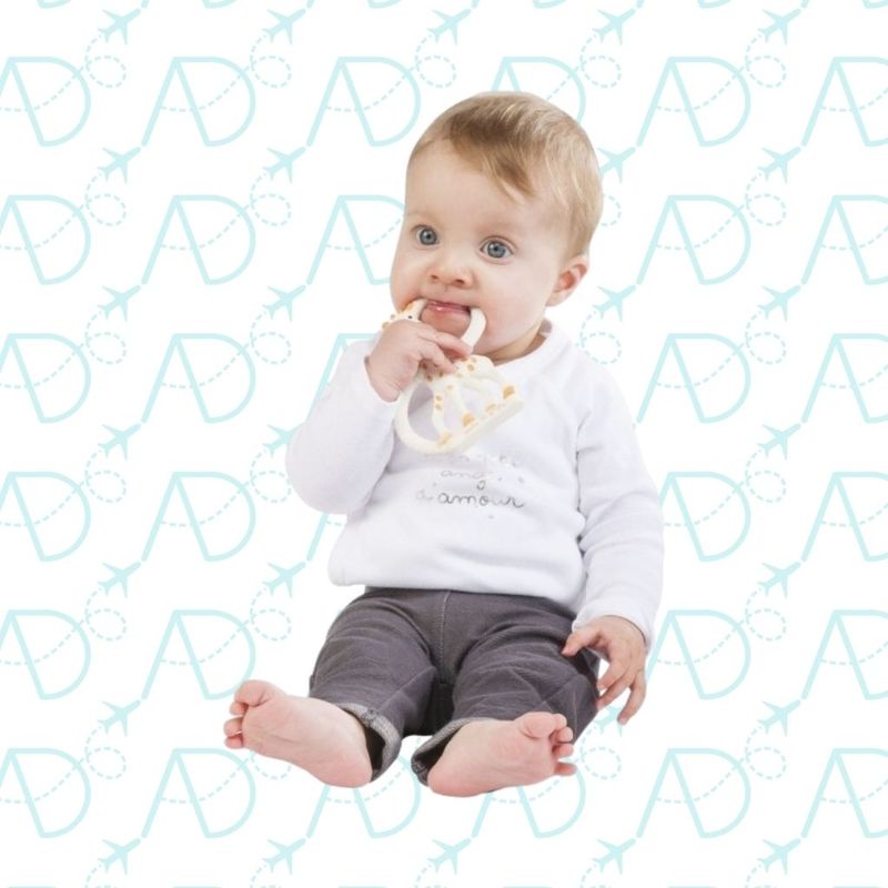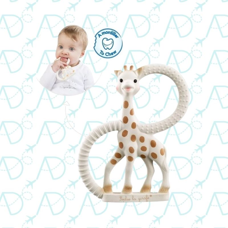 Primeiro anel de dentição feito 100% de borracha natural. Modelo macio para um período de dentição mais avançado. Os dois anéis têm diferentes superfícies texturizadas para o bebê escolher de acordo com sua idade e necessidades. Saudável e natural para o bebê e dotado de numerosas partes para mordiscar (orelhas, chifres, patas e anéis). Esta linda e famosa girafinha contribuirá para o prazer do bebê e será ideal no momento de aliviar a erupção dentária.