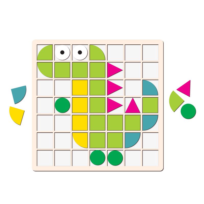 O Mosaico Criativo - Babebi é um brinquedo educativo que incentiva a criatividade e o raciocínio lógico das crianças. Com peças coloridas de diferentes formas, os pequenos podem criar padrões, imagens e composições livremente, explorando cores e desenvolvendo habilidades motoras de forma lúdica. Material: Madeira