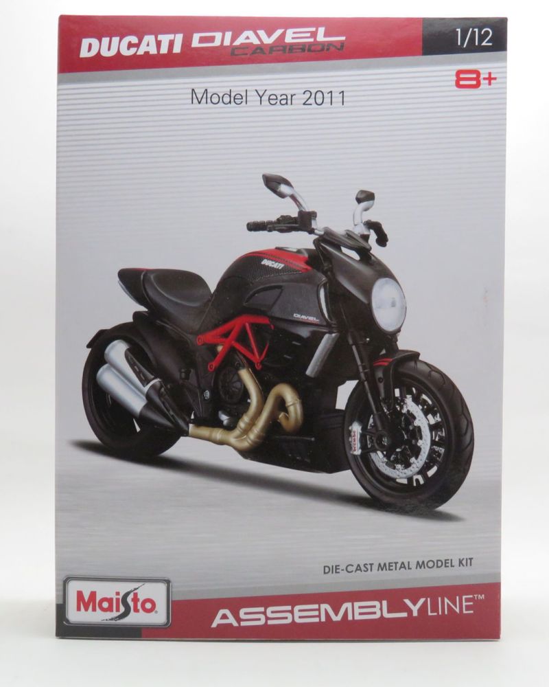 Ducati Diavel CarbonMarca do produto: Maisto.Coleção: Kit em Metal p/ Montar - Assembly LineEscala: 1/12 (aproximadamente 17 cm de comprimento).Pneus de Borracha.
