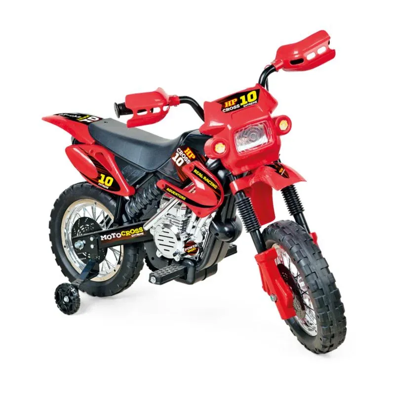 A Moto Elétrica Homeplay oferece momentos incríveis para as crianças, ao mesmo tempo que proporciona segurança, já que possui rodinhas laterais que garantem o equilíbrio dos pequenos. As rodinhas podem ser removidas quando a criança conseguir se equilibrar sozinha. O design é muito parecido com um veículo de Motocross de verdade.