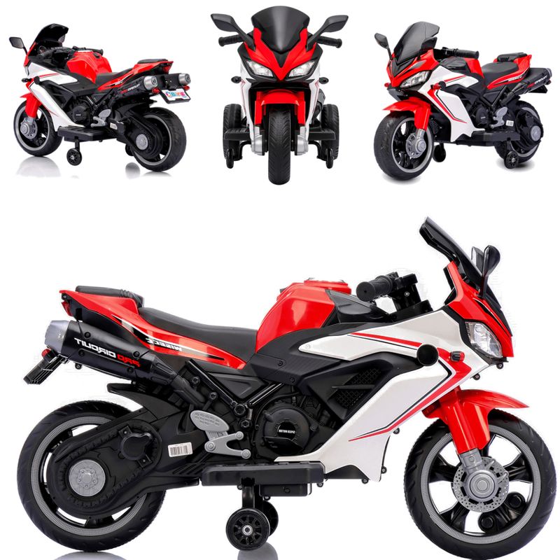 Com estrutura robusta em plástico de alta resistência e reforços em aço carbono, essa moto elétrica oferece assento confortável, apoio para os pés e rodinhas de apoio que aumentam a estabilidade, tudo para que a criança possa se divertir com mais confiança.
