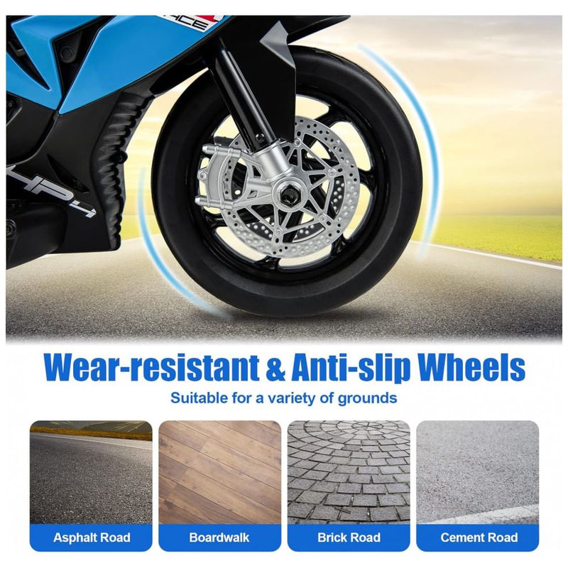 Estrutura estável de 3 rodasEquipado com rodas resistentes ao desgaste, o passeio infantil de motocicleta é adequado para vários terrenos, como estrada de asfalto, estrada de cimento, estrada de tijolos e calçadão. 3 pneus texturizados largos devem suportar uma criança com menos de 30 kg ajudando a a manter o equilíbrio.