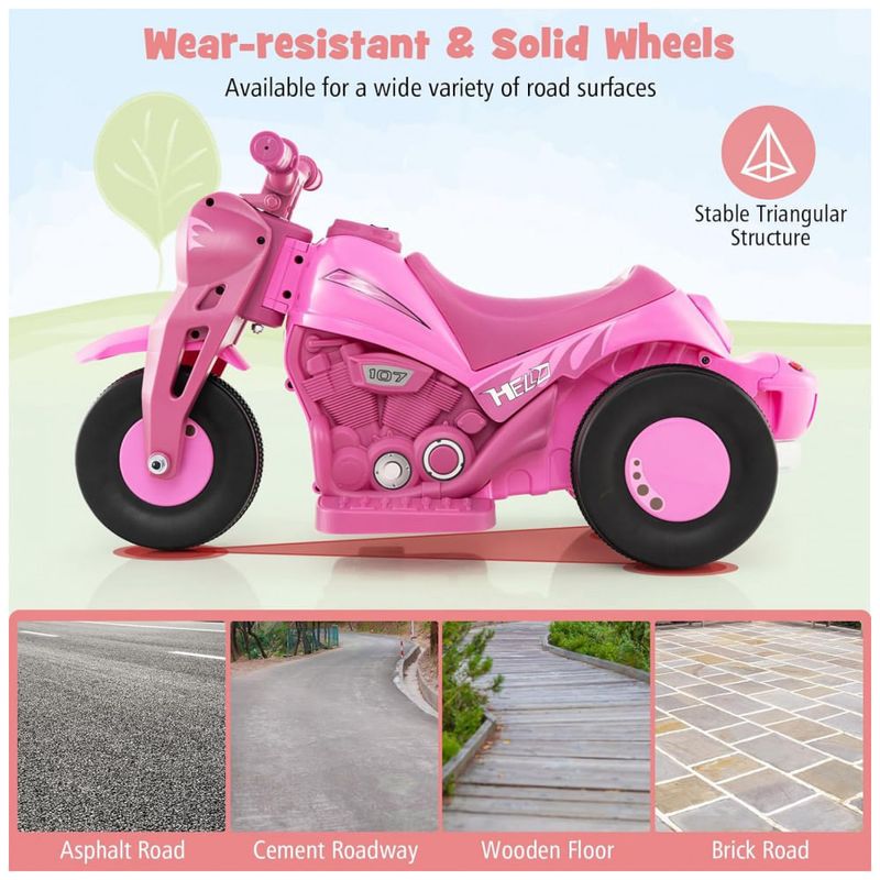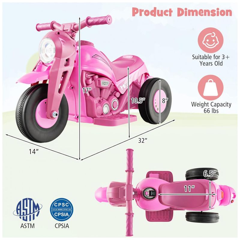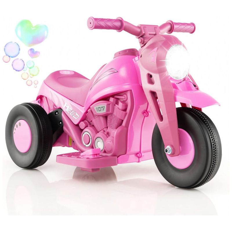 Moto Elétrica Triciclo Infantil com Bolhas de Sabão, Música e Farol LED, 6V, Costzon, Rosa