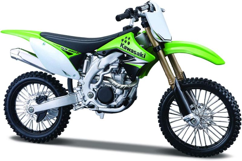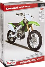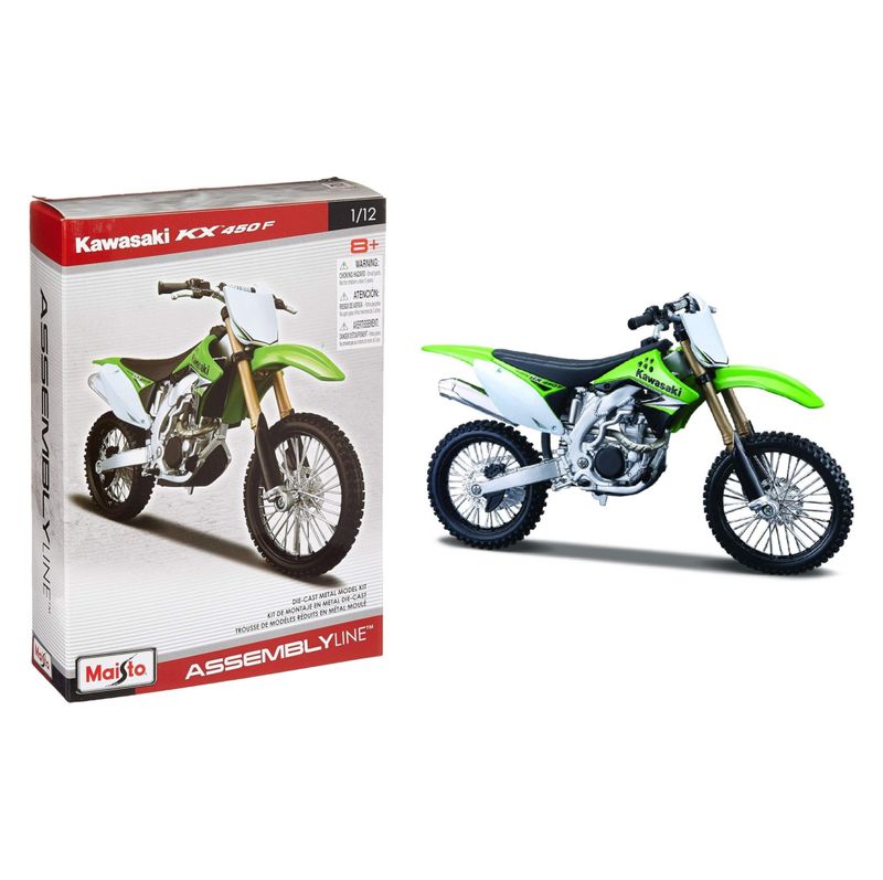 Moto Kawasaki KX 450F Marca do produto: Maisto. Coleção: Kit em Metal p/ Montar - Assembly Line Escala: 1/12 (aproximadamente 17 cm de comprimento). Pneus de Borracha. Miniatura em Metal com partes de plástico.