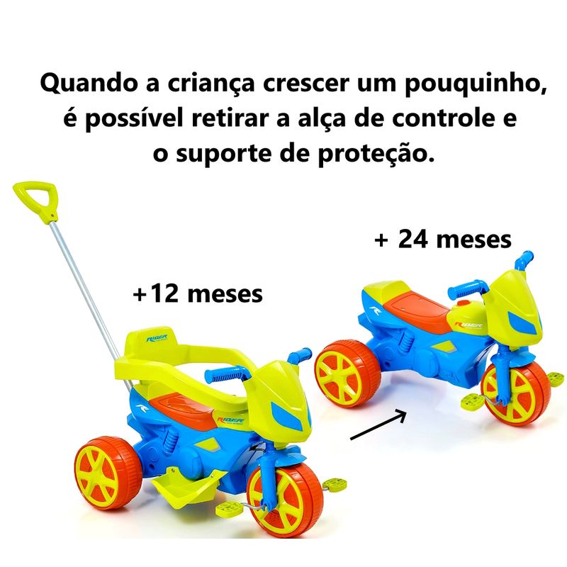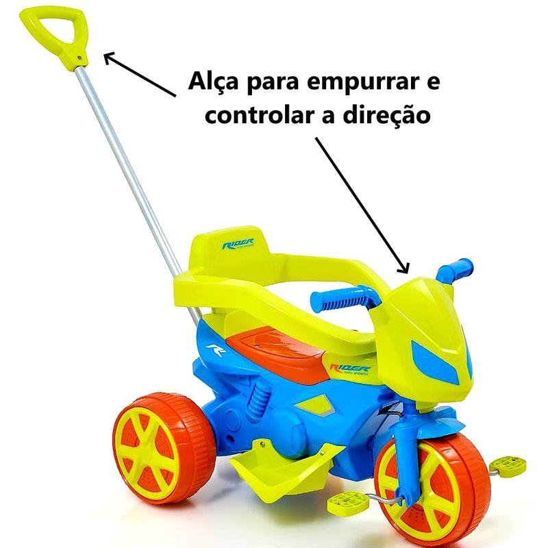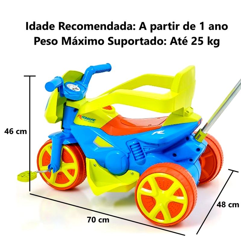 Triciclo Verde Infantil Moto Rider Com Pedal e Empurrador para Crianças Bebê até 25kg Usual