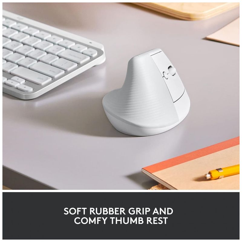 Levante se quando a vida da mesa o derrubar, levante se com o mouse ergonômico vertical Logitech Lift um ótimo ajuste para mãos direitas pequenas e médias.