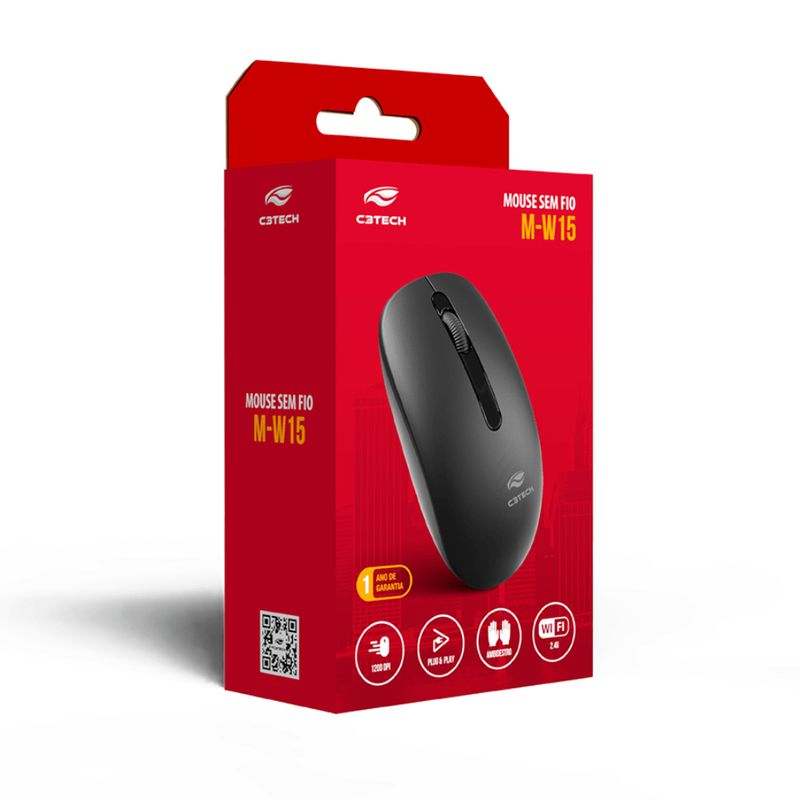Mouse Sem Fio Wireless M-W15 2.4GHz 1200 DPI – Ambidestro – Preto