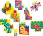 Kit blocos de montar 48 peças, 8 adesivos e 8 mini dinossauros