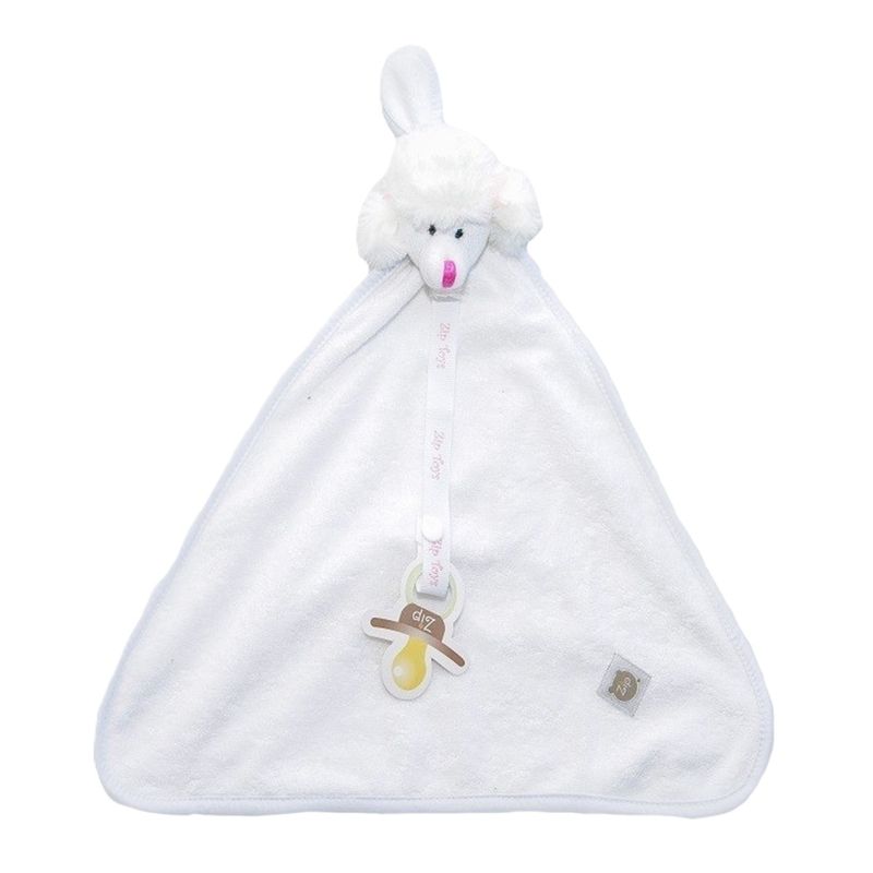 Lindo paninho de boca para os bebês em tecido atoalhado na cor branca com um bichinho na ponta de uma cachorrinha Poodle chamada Lili em pelúcia macia. Verso em tecido algodão branco e arremate em toda borda com tecido branco. Com prendedor de chupeta com botão de pressão.