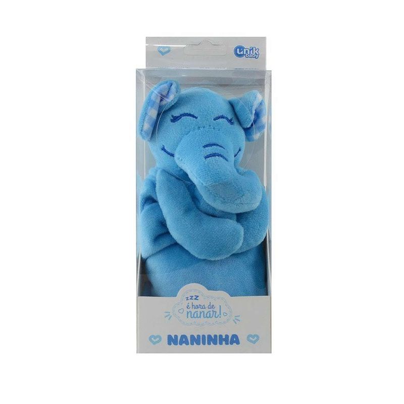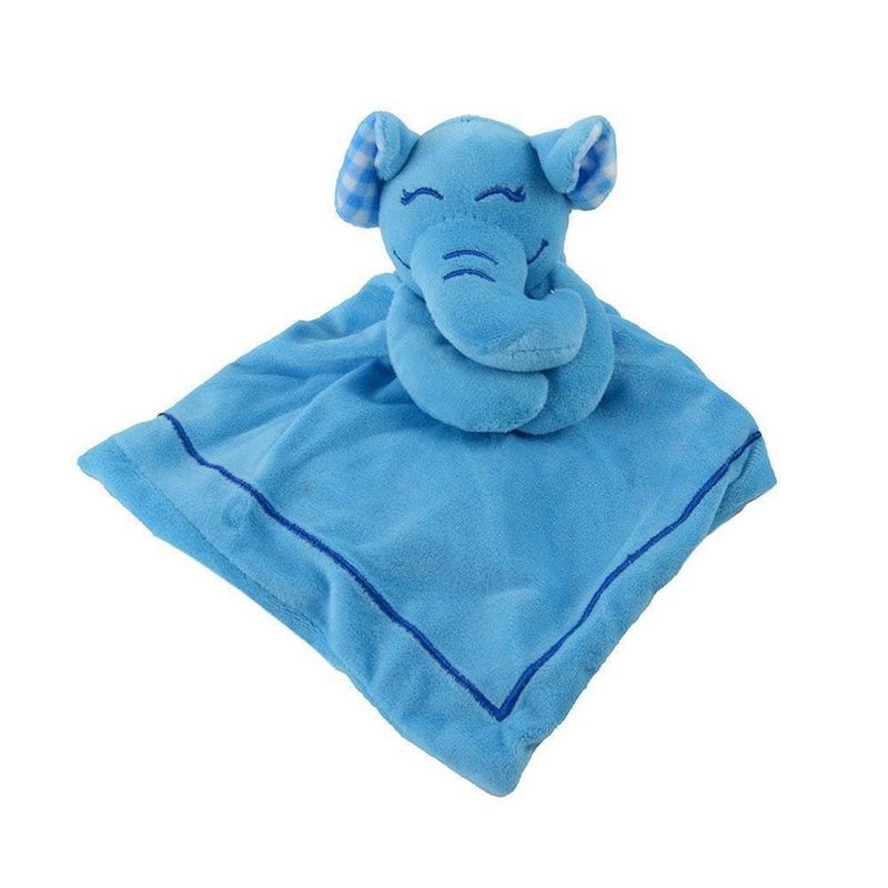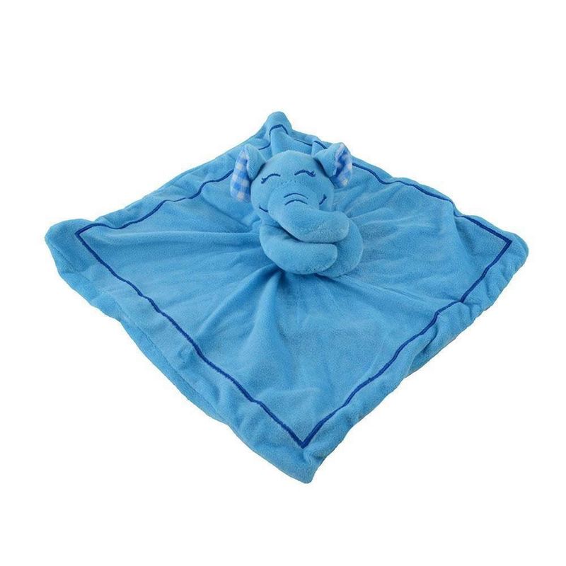 Lindo e fofinho blanket para os bebês em plush/ pelúcia com toque macio e confortável na cor azul em plush/pelúcia com detalhes bordados. Detalhe no centro de bichinho de pelúcia de um charmoso elefante azul com detalhes bordados segurando o paninho.