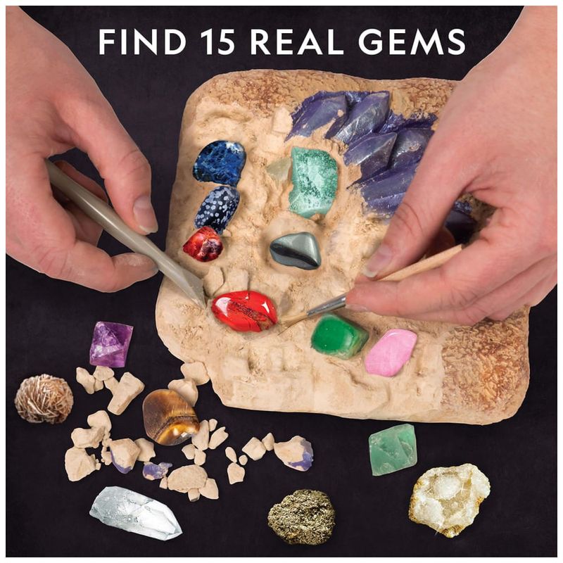 UM KIT DE ESCAVAÇÃO DE GEMSTONE QUE AS CRIANÇAS AMAM Este incrível kit de ciências dá ao seu filho a emoção de cavar em uma mina de joias de verdade Eles cavarão como geólogos de verdade com as ferramentas incluídas. Imagine descobrir 15 pedras preciosas incríveis neste incrível tijolo de escavação
