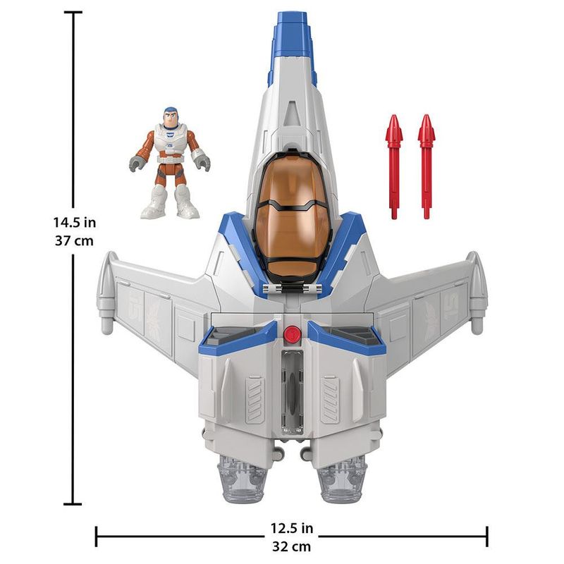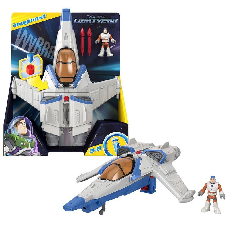 Patrulheiros espaciais em treinamento podem brincar de aventuras espaço sideral adentro, apenas pressionando o botão superior da nave, para lançar engrenagens e prepararem-se para atingirem a hipervelocidade necessitada por Buzz e sua equipe para voltarem pra casa em segurança.