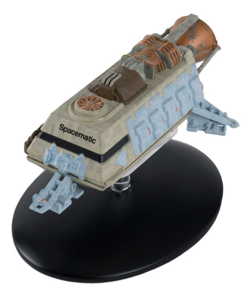 Nave Star Trek Cyrano Jones' spacematic Original 1magnus SKU:stclspacematic0347-a Com aproximadamente o dobro do tamanho de uma nave auxiliar classe F da Frota Estelar, a Spacematic pertencia e era operada pelo comerciante galáctico Cyrano Jones no século 23. Jones usou o veículo para comércio e prospecção de asteroides.