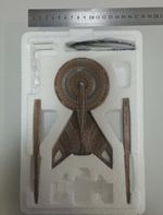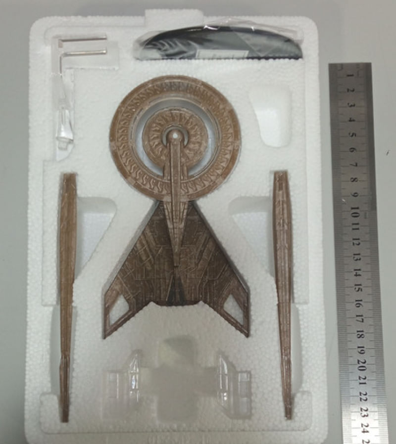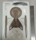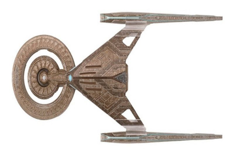 A USS Discovery NCC-1031-A modelo reajustado. Após sua chegada inesperada e violenta no século 32, a USS Discovery NCC-1031 recebeu uma extensa atualização na sede da Federação. Reequipado com tecnologia futurista ao longo de longas semanas de engenharia, a nave foi comissionado como USS Discovery NCC-1031-A! O reequipamento do Discovery o armou com um dispositivo de camuflagem e incorporou matéria programável em cada uma de suas estações. Talvez, mais notavelmente, os engenheiros da Federação tenham convertido os motores de dobra do Discovery para combinar com a configuração destacada comum ao século 32, aumentando muito sua manobrabilidade. O modelo desta USS Discovery-A (Refit) captura a nave em detalhes precisos, assim como apareceu na terceira temporada de Star Trek: Discovery!
