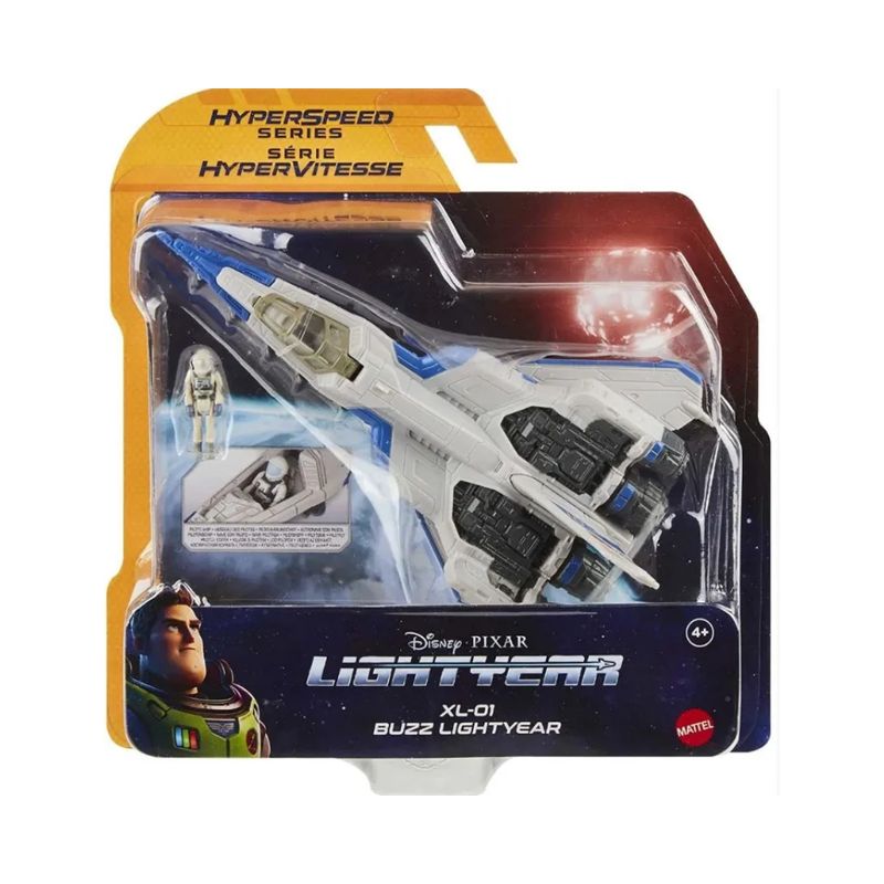 A série Hyperspeed inclui uma frota de veículos inspirada nos veículos e naves espaciais Lightyear da Disney e da Pixar. Esses brinquedos apresentam naves espaciais legais, veículos terrestres e cápsulas, incluindo os velozes foguetes XL de Buzz Lightyear, e cada um vem com uma pequena figura de personagem para pilotar o caminho para a aventura. Os veículos têm aproximadamente 6 polegadas de comprimento com trem de pouso suspenso! As figuras têm aproximadamente 1,5 polegadas de altura com articulações móveis para permitir que elas se sentem no cockpit.