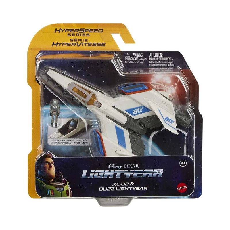 A série Hyperspeed inclui uma frota de veículos inspirada nos veículos e naves espaciais Lightyear da Disney e da Pixar. Esses brinquedos apresentam naves espaciais legais, veículos terrestres e cápsulas, incluindo os velozes foguetes XL de Buzz Lightyear, e cada um vem com uma pequena figura de personagem para pilotar o caminho para a aventura. Os veículos têm aproximadamente 6 polegadas de comprimento com trem de pouso suspenso! As figuras têm aproximadamente 1,5 polegadas de altura com articulações móveis para permitir que elas se sentem no cockpit.