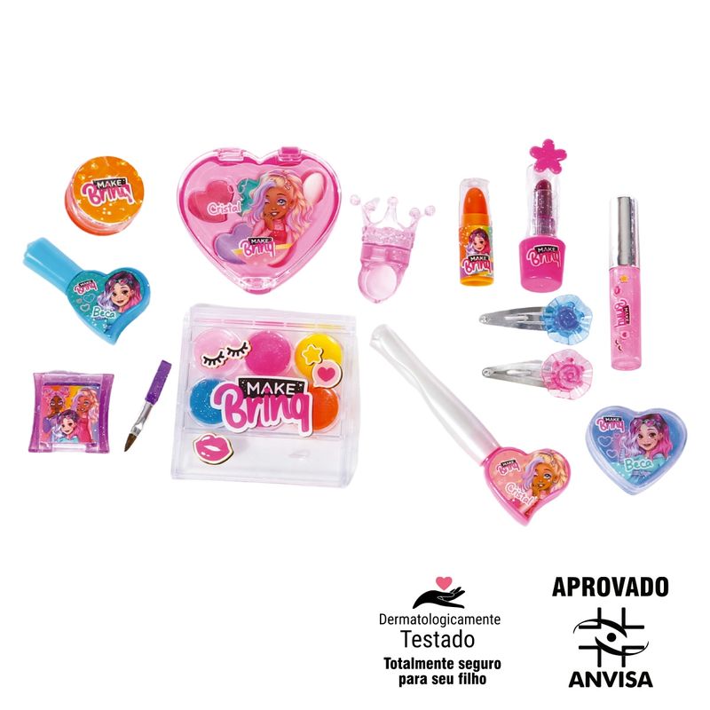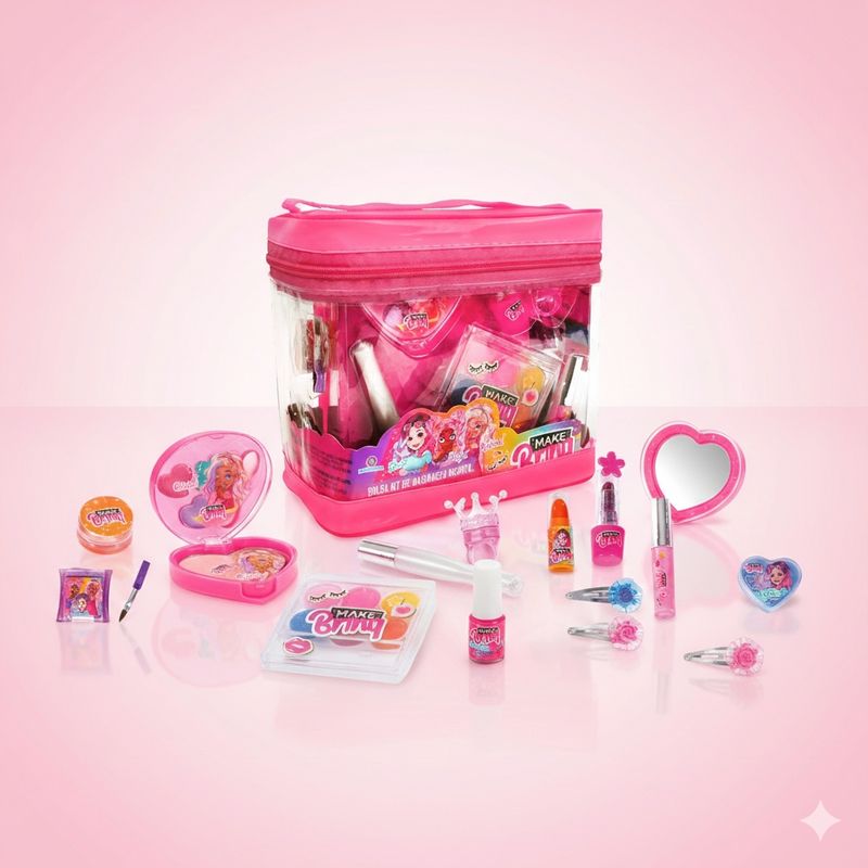 O Kit de Maquiagem Make Brinq é o presente perfeito para estimular a imaginação e a vaidade das pequenas de forma lúdica e segura. Com uma seleção completa de itens, ele oferece uma experiência real de beleza para brincar de se transformar!