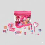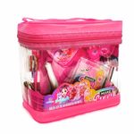 Conteúdo: 1 Necessaire + maquiagens (sombras, batons, gloss), esmaltes e acessórios de beleza.
