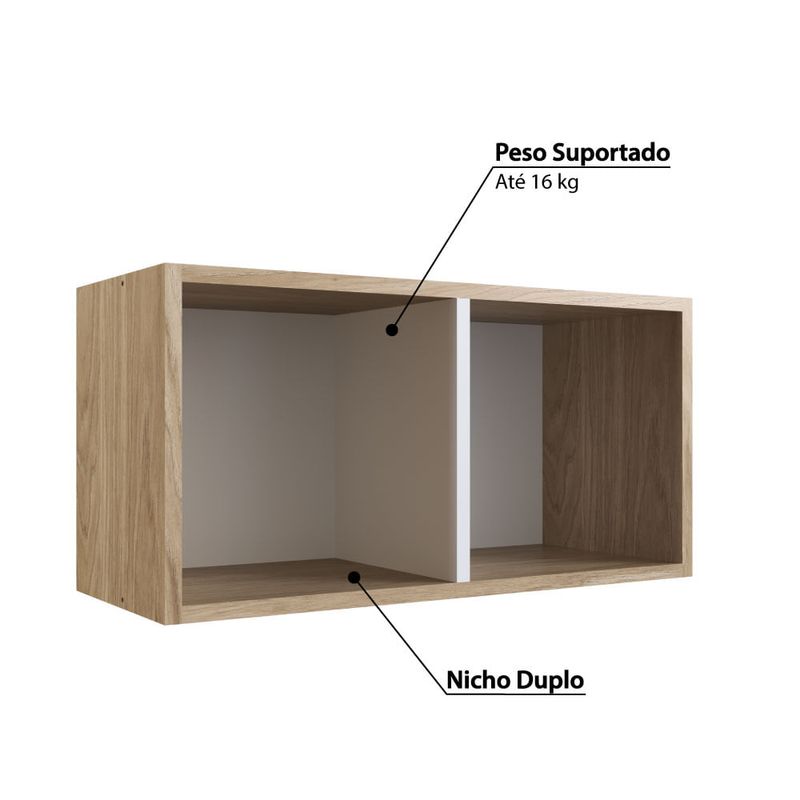 Nicho Duplo Retangular de Parede Favo de Mel - Natural/Branco