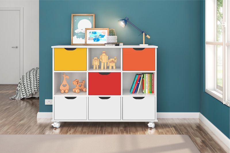 Nicho Organizador com Rodinhas Portland Branco com Gavetas Brancas e Coloridas