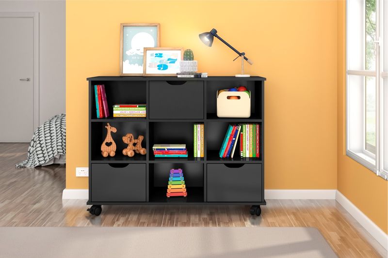 Nicho Organizador com Rodinhas Portland Preto com Gavetas
