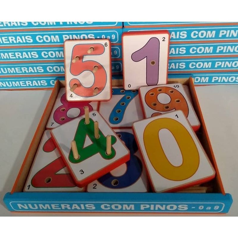 Numerais com Pinos é um brinquedo que auxilia o aprendizado com números e o entendimento da relação quantidade e numeral.