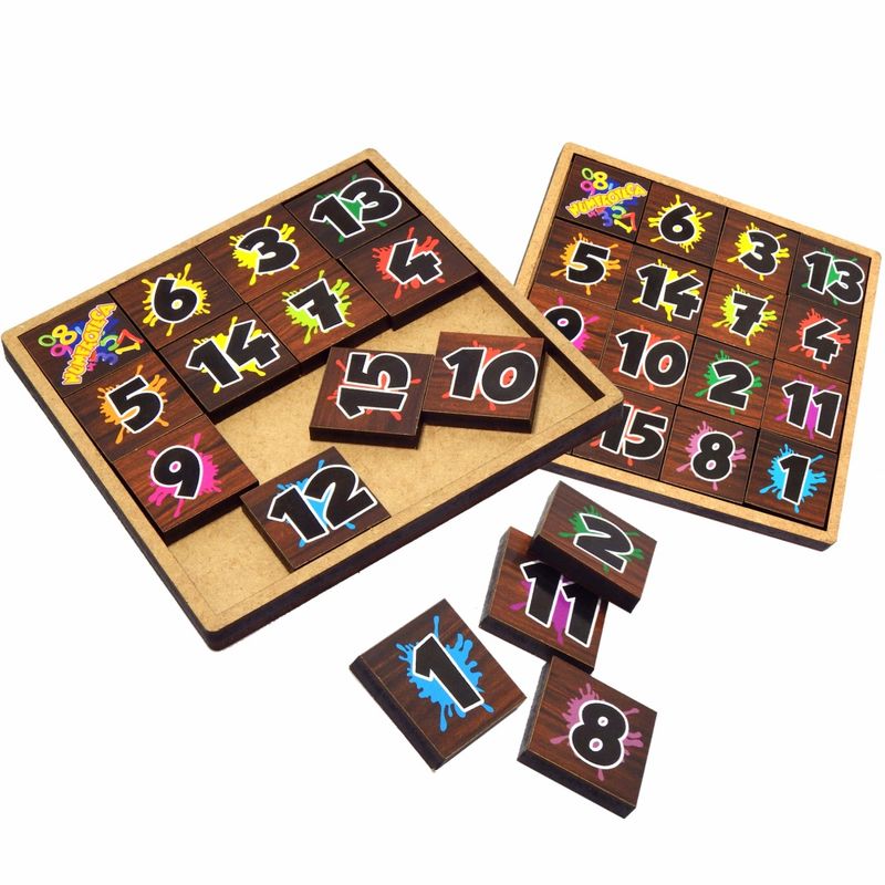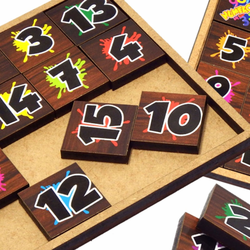 O objetivo é colocar as peças numéricas em ordem crescente ou decrescente. Para iniciar o jogo retire a peça colorida.