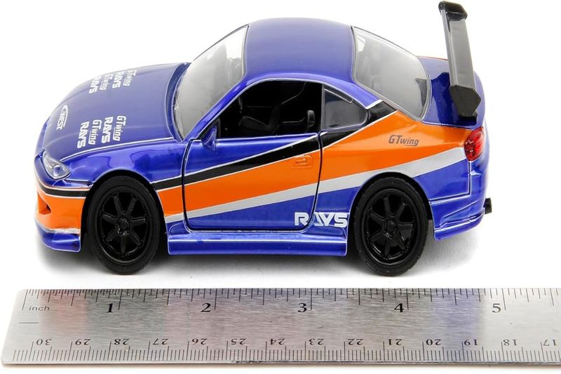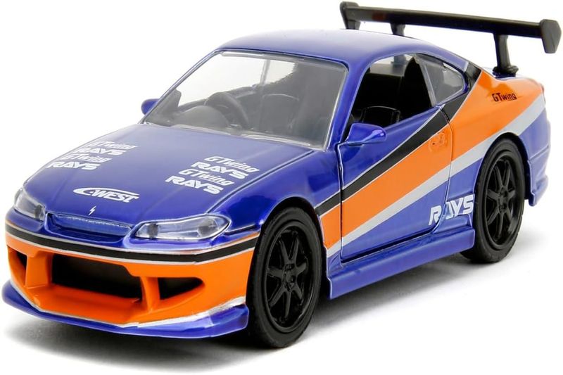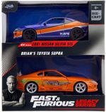 Pack 2 Velozes e Furiosos - 2001 Nissan Silvia 515 e Brian's Toyota Supra Marca do produto: Jada. Coleção: Hollywood Rides - Fast & Furious. Escala: 1/32 (aproximadamente 12,5 cm de comprimento). Pneus de Borracha. Abre as portas. Miniatura em Metal com partes de plástico.