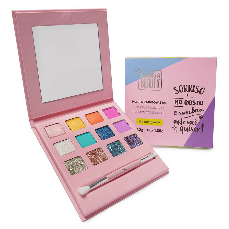 Paleta de Sombras 12 Cores Rainbow Star - Estrela Beauty